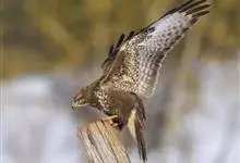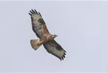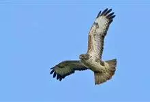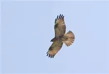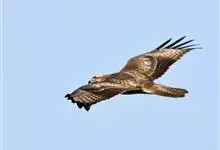 普通鵟:是鹰科、鵟属鸟类,属中型猛禽。体长54厘米,翼展122-137厘米,体重515-810克。体色变化较大,上体主要为暗褐色,下体主要为暗褐色或淡褐色,具深棕色横斑或纵纹,尾淡灰褐色,…全部>>