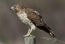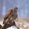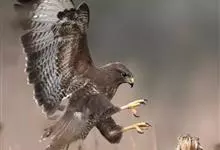 普通鵟:是鹰科、鵟属鸟类,属中型猛禽。体长54厘米,翼展122-137厘米,体重515-810克。体色变化较大,上体主要为暗褐色,下体主要为暗褐色或淡褐色,具深棕色横斑或纵纹,尾淡灰褐色,…全部>>