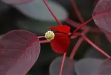 紫锦木是大戟科、大戟属的常绿乔木。叶圆卵形,主脉于两面明显,侧脉数对,边缘全缘,两面红色;花序生于二歧分枝的顶端,总苞阔钟状,裂片呈三角形,边缘具毛,腺体深绿色呈半圆形,…全部>>