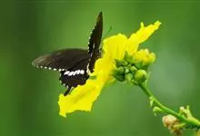 玉带凤蝶是鳞翅目凤蝶科凤蝶属昆虫,又称白带凤蝶、黑凤蝶、缟凤蝶、梁山伯凤蝶。雄蝶前翅外缘、后翅中央有7个大型黄白斑,排列成带。老熟幼虫深绿色,头部黄褐色,后胸前缘有1条齿状的黑色线状横纹,…全部>>