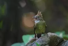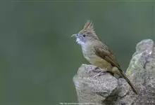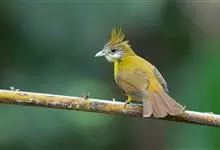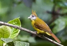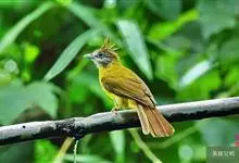 白喉冠鹎:体长20-25厘米。头顶红褐色,有长而细的羽冠、红褐色,头侧灰色。上体橄榄绿黄色,飞羽暗褐色,外翈茶黄色,尾下覆羽皮黄色。…全部>>