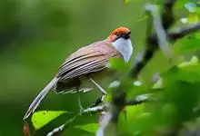 白颊噪鹛是雀形目噪鹛科噪鹛属鸟类,又称土画眉、小画眉、小噪鹃。成鸟额至头顶栗褐色,长眉纹、眼先和颊纹棕白色,眼后至耳羽深褐色,…全部>>