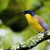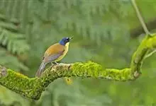 黄喉噪鹛体型略小,顶冠蓝灰色,特征为具黑色的眼罩和鲜黄色的喉。上体褐色,尾端黑色而具白色边缘,腹部及尾下覆羽皮黄色而渐变成白色。黄喉噪鹛隐匿于亚热带常绿林和浓密灌丛,于地面杂物中取食,喜食昆虫,…全部>>