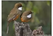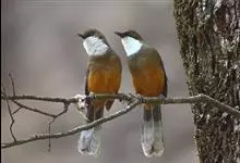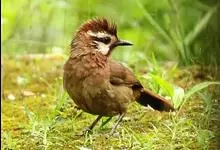 白颊噪鹛是雀形目噪鹛科噪鹛属鸟类,又称土画眉、小画眉、小噪鹃。成鸟额至头顶栗褐色,长眉纹、眼先和颊纹棕白色,眼后至耳羽深褐色,…全部>>