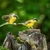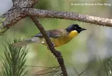 黄喉噪鹛体型略小,顶冠蓝灰色,特征为具黑色的眼罩和鲜黄色的喉。上体褐色,尾端黑色而具白色边缘,腹部及尾下覆羽皮黄色而渐变成白色。黄喉噪鹛隐匿于亚热带常绿林和浓密灌丛,于地面杂物中取食,喜食昆虫,…全部>>