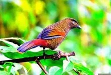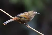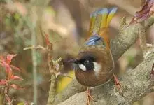 蓝翅噪鹛:噪鹛科、彩翼噪鹛属动物。中型鸟类,体长22-25厘米。上体棕橄榄褐色密被黑色鳞状斑,眼蓝白色,眼上有一长而宽阔的黑色眉纹,从眼先直到颈侧。下体棕褐色被黑色鳞状斑;尾上和尾上覆羽栗色,…全部>>