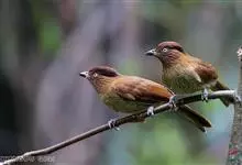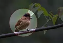 黑顶噪鹛:中型鸟类,体长24-26厘米。前额、脸、颏、喉黑色,头顶黑褐沾棕或深棕橄榄褐色,背栗褐或棕褐色,颧斑白色或棕红色,眼后缘和颈侧亦具白斑,飞羽金黄橄榄色而具蓝灰色尖端。下体淡棕褐色。…全部>>