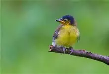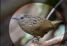 黄喉雀鹛是雀眉科、拟希鹛属小型鸟类,体长11-12厘米。头顶浅黄色具黑色鳞状斑,头顶两侧各有一道黑色侧冠纹,眉纹浅黄色、长而宽阔。上体灰绿色,两翅和尾褐色而具浅黄色窄缘。下体淡黄色。特征明显,…全部>>