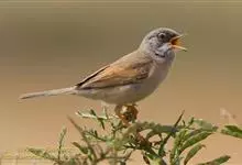 白喉林莺:体长10-13厘米,是一种类体型略小的莺鸟。喉白,上体灰褐或沙褐色,头顶较灰,贯眼纹黑褐或暗褐色。下体污白。耳羽深黑灰,胸侧及两胁沾皮黄色、褐色或淡粉红色。外侧尾羽羽缘白色。…全部>>