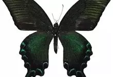 绿带翠凤蝶,又名深山凤蝶,为凤蝶科凤蝶属下的一种。分布于韩国、日本、中国台湾、中国大陆等地。翅黑色,满布金绿色鳞片。前翅亚缘具黄绿色横带纹。后翅外缘有6个略呈新月形的红斑,…全部>>