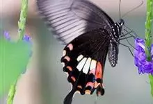 玉斑凤蝶Papilio helenus 别名白纹凤蝶,是凤蝶科凤蝶属美凤蝶亚属大型种类。雌雄同型;体翅皆黑色,后翅正面中室外有3个并列的白色斑,亚外缘有1列模糊的新月形红色斑,…全部>>