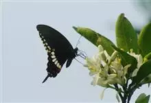 玉带凤蝶是鳞翅目凤蝶科凤蝶属昆虫,又称白带凤蝶、黑凤蝶、缟凤蝶、梁山伯凤蝶。雄蝶前翅外缘、后翅中央有7个大型黄白斑,排列成带。老熟幼虫深绿色,头部黄褐色,后胸前缘有1条齿状的黑色线状横纹,…全部>>