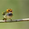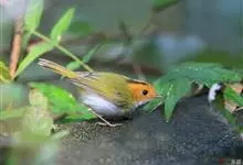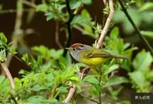 棕脸鹟莺:体长10厘米,是一种色彩亮丽而有特色的莺鸟。头栗色,具黑色侧冠纹。上体绿,腰黄色。下体白,颏及喉杂黑色点斑,上胸沾黄。与栗头鹟莺的区别在头侧栗色,白色眼圈不显著且无翼斑。…全部>>