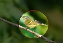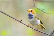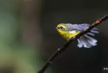 黑脸鹟莺:体长10厘米,是有特色的体小而多彩的莺鸟。粗眉纹,颏、喉及尾下覆羽黄色,脸罩黑,头顶及颈背灰色,上体绿,无翼纹,腹白。虹膜褐色;上嘴色深,下嘴肉色;脚偏绿色。…全部>>