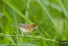 金头扇尾莺体小而具褐色纵纹的莺。嘴细长,略向下弯;翼短,体型娇小,尾长。下体皮黄,喉近白,尾深褐,尾端皮黄。雌雄羽色相近,羽色单调。繁殖期雄鸟顶冠亮金色,腰褐色。雌鸟及非繁殖期雄鸟头顶密布黑色细纹,…全部>>
