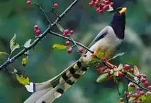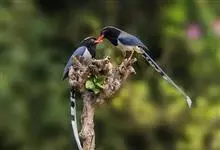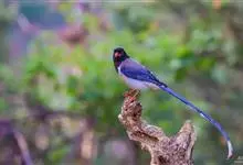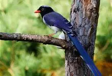 红嘴蓝鹊,别名山鹊、长尾鹊,是鸦科蓝鹊属的一种观赏性较强的大型鸣禽。该物种为体长54~65cm,头、颈、喉和胸黑色,头顶至后颈有一块白色至淡蓝白色或紫灰色块斑,其余上体紫蓝灰色或淡蓝灰褐色。尾长呈凸状,…全部>>
