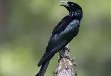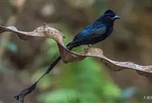 发冠卷尾是中型鸟类,体长28-35厘米。通体绒黑色缀蓝绿色金属光泽,额部具发丝状羽冠,外侧尾羽末端向上卷曲。栖息于海拔1500米以下的低山丘陵和山脚沟谷地带,多在常绿阔叶林、次生林或人工松林中活动。…全部>>