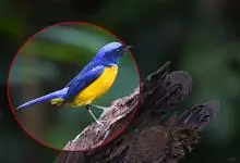 棕腹大仙鹟:体重24-28克,体长15-17厘米,是一种小型的色彩亮丽的鹟。雄鸟上体深蓝,下体棕色,脸黑,额、颈侧小块斑、翼角及腰部亮丽闪辉蓝色。与棕腹仙鹟易混淆,区别在色彩较暗。雌鸟灰褐,…全部>>