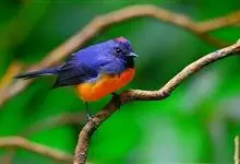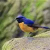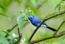 棕腹大仙鹟:体重24-28克,体长15-17厘米,是一种小型的色彩亮丽的鹟。雄鸟上体深蓝,下体棕色,脸黑,额、颈侧小块斑、翼角及腰部亮丽闪辉蓝色。与棕腹仙鹟易混淆,区别在色彩较暗。雌鸟灰褐,…全部>>