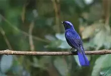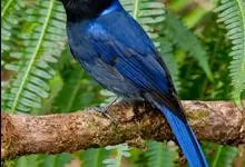 大仙鹟:体重34-38克,体长20-2厘米。是一种体型较大的深色鹟。雄鸟上体蓝色,头顶、颈侧条纹、肩块及腰部辉蓝,下体黑色。雌鸟橄榄褐色,头顶蓝灰,颈侧具闪辉浅蓝色块,喉具皮黄色三角形块斑。…全部>>