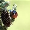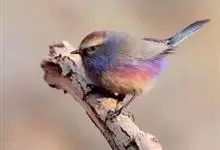 凤头雀莺:小型鸟类。体长9-10厘米,雄鸟呈毛茸茸的紫色和绛紫色,顶冠淡紫灰色,额及凤头白色,尾全蓝。雌鸟喉及上胸白,至臀部渐变成淡紫色,耳羽灰,…全部>>