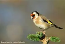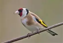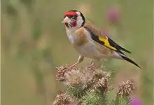 红额金翅雀:共有14个亚种。小型鸟类,体长12-14厘米。额、脸颊和颏朱红色,眼先和眼周黑色,在淡色的头部极为醒目。上体灰褐或乌褐色,尾上覆羽白色,两翅和尾黑色,翅上有黄色斑。下体喉、胸灰褐或乌褐色…全部>>
