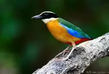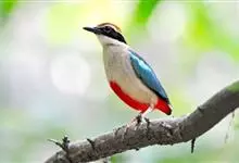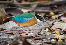 蓝翅八色鸫是雀形目八色鸫科的鸟类。体长17-20厘米,体重类约48-70克,体型圆胖,尾短,腿长,以身体具有红、绿、蓝、白、黑、黄、褐、栗等鲜艳夺目,丰富艳丽的色彩而得名,是很有观赏价值的鸟类。主要…全部>>