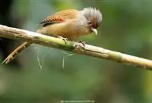 黑喉缝叶莺:体长11.5厘米,是一种小型的顶冠棕色、腹部白色的莺。尾甚长而常上翘,臀黄色,具特征性的偏黑色喉,上体橄榄绿色,头侧灰色。雌鸟色暗,头少红色且喉少黑色。与长尾缝叶莺的区别在后顶冠亦为棕色,…全部>>