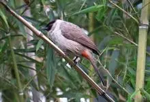 黑喉红臀鹎是雀形目鹎科鹎属鸟类,别称有黑头公、红臀鹎。头顶黑色具光泽;后颈、肩和背暗褐具灰色狭缘;腰羽几纯暗褐,尾上覆羽近白色,羽端浅灰褐色;尾羽褐黑,中央尾羽具狭窄的白色端斑,…全部>>