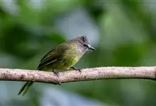 黄绿鹎,小型鸟类,体长19-22厘米。额至头顶暗褐具灰色羽缘,眼先黑色,其上面有一粗著的白纹从鼻后至眼,在黑色的头部极为醒目。上体橄榄绿褐色。颏、喉淡灰色或灰白色,胸灰褐色具橄榄黄色羽缘,…全部>>