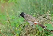 黑喉红臀鹎是雀形目鹎科鹎属鸟类,别称有黑头公、红臀鹎。头顶黑色具光泽;后颈、肩和背暗褐具灰色狭缘;腰羽几纯暗褐,尾上覆羽近白色,羽端浅灰褐色;尾羽褐黑,中央尾羽具狭窄的白色端斑,…全部>>