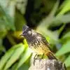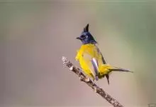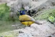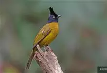 黑冠黄鹎:体长18-21厘米,是一种中等体型偏黄色鹎。整个头、颈、颏、喉黑色,头顶有显著直立的羽冠,黑色,上体褐橄榄黄绿色,下体橄榄黄色。虹膜偏红;嘴及脚黑色。…全部>>