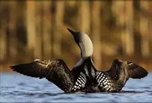 黑喉潜鸟为潜鸟目下的大型水禽,体长56-75厘米,体重雄性3.3-3.8千克,雌性2-3.1千克。个体较红喉潜鸟大,嘴直,颈粗而长,常弯曲成优美的S型。…全部>>