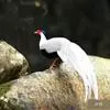 白马鸡共有四个亚种。是大型雉类,体长80-100厘米。通体大都白色,头侧绯红色;头顶具黑色短羽,耳羽簇白色,呈短角状。胸淡灰色或白色,飞羽灰褐色,尾羽特长,大都辉绿蓝色,末端沾紫色光泽,羽枝大都分离,…全部>>
