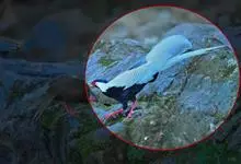 白鹇,是鸡形目雉科鹇属的一种留鸟。雄鸟上体白色并具黑色纹,下体黑色,头顶具黑色长羽冠,尾白而长;雌鸟体型较小,以橄榄褐色为主,下体具白色或皮黄色细纹;虹膜褐色,眼周具红色裸皮,喙黄色,脚鲜红色。…全部>>