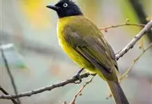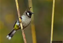 黑冠黄鹎:体长18-21厘米,是一种中等体型偏黄色鹎。整个头、颈、颏、喉黑色,头顶有显著直立的羽冠,黑色,上体褐橄榄黄绿色,下体橄榄黄色。虹膜偏红;嘴及脚黑色。…全部>>