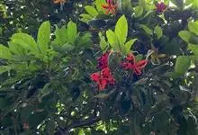 假苹婆是锦葵科苹婆属乔木植物。幼枝被毛;叶椭圆形或披针形,先端骤尖,基部钝或近圆无毛;圆锥花序腋生,花淡红色;蓇葖果鲜红色,长卵圆形或长椭圆形;种子卵圆形黑褐色;花期4-6月。…全部>>
