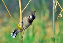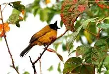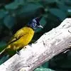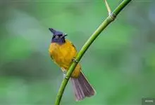 黑冠黄鹎:体长18-21厘米,是一种中等体型偏黄色鹎。整个头、颈、颏、喉黑色,头顶有显著直立的羽冠,黑色,上体褐橄榄黄绿色,下体橄榄黄色。虹膜偏红;嘴及脚黑色。…全部>>