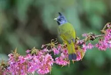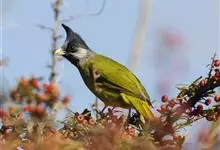 凤头雀嘴鹎:属小型鸟类,体长18-22厘米。嘴粗短、呈象牙色或乳黄色,前额和脸灰色,头顶黑色,有一朝前竖立的黑色羽冠。上体橄榄绿色,下体黄绿色,尾羽黄绿色具宽阔的黑褐色端斑。…全部>>