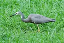 白脸鹭:体长60-70厘米,体重550克。成鸟相对其他鹭科鸟类要小,正如它的名字,很容易通过白脸鹭的蓝灰色身体和独特的白脸来识别。嘴长而尖直,翅大而长,脚和趾均细长,胫部部分裸露,脚三趾在前一趾在后,…全部>>