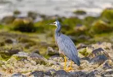 白脸鹭:体长60-70厘米,体重550克。成鸟相对其他鹭科鸟类要小,正如它的名字,很容易通过白脸鹭的蓝灰色身体和独特的白脸来识别。嘴长而尖直,翅大而长,脚和趾均细长,胫部部分裸露,脚三趾在前一趾在后,…全部>>