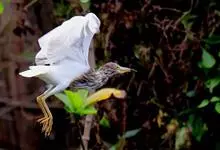 夜鹭是中型涉禽,体长46-60厘米。体较粗胖,颈较短;嘴尖细,微向下曲,黑色;胫裸出部分较少,脚和趾黄色;头顶至背黑绿色而具金属光泽;上体余部灰色;下体白色;枕部披有2-3枚长带状白色饰羽,下垂至背上,…全部>>