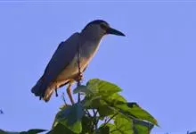 夜鹭是中型涉禽,体长46-60厘米。体较粗胖,颈较短;嘴尖细,微向下曲,黑色;胫裸出部分较少,脚和趾黄色;头顶至背黑绿色而具金属光泽;上体余部灰色;下体白色;枕部披有2-3枚长带状白色饰羽,下垂至背上,…全部>>