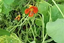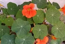 旱金莲是旱金莲科旱金莲属蔓生一年生草本植物。叶互生,叶柄向上扭曲,盾状,叶圆形,具波状浅缺刻,下面疏被毛或有乳点;花黄、紫、桔红或杂色,花托杯状,花瓣为圆形,边缘具缺刻;果实为扁球形;花果期6-10月,…全部>>