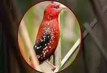 红梅花雀小型鸟类,体长9-10厘米。雄鸟通体朱红色,背、肩、胸等满布白色小斑点,两翅和尾黑褐色均具白色端斑,嘴红色,脚蜡黄色。雌鸟上体淡褐色或赭褐色,翅上中覆羽、大覆羽和内侧飞羽末端具白色斑点,…全部>>