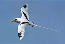 白尾鹲:体重220-410克;体长370-400毫米,加上延长的尾羽为680-990毫米,是一种中型热带海鸟。全身羽毛主要为白色,繁殖期微缀有橙色。眼前和眼后有粗著的黑色斑,像两条粗黑的眼眉。…全部>>