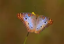 美眼蛱蝶为鳞翅目、蛱蝶科、眼蛱蝶属节肢动物。除西北外,全国各地均有分布,国外分布于日本及东南亚。幼虫以马鞭草科的过江藤、车前草科的车前草等为食。全部>>