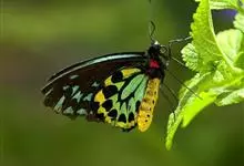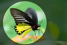 金裳凤蝶是凤蝶科、裳凤蝶属的动物。金裳凤蝶身体呈黑色,头、颈和胸侧有红毛,腹部有黑黄两色相间条纹,雄蝶前翅黑色,具黑天鹅绒光泽,各脉两侧灰白色,后翅金黄色,各室外缘有等腰三角形黑斑1枚,斑内侧有晕,…全部>>