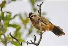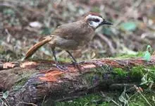 白颊噪鹛是雀形目噪鹛科噪鹛属鸟类,又称土画眉、小画眉、小噪鹃。成鸟额至头顶栗褐色,长眉纹、眼先和颊纹棕白色,眼后至耳羽深褐色,…全部>>