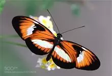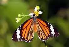 黑脉金斑蝶:翅阔8.6-12.4厘米。雄蝶较雌蝶为大。成年蝶颜色鲜艳,翅膀上有显眼的橙色及黑色斑纹,周围是宽阔的黑色边框,布有许多白色斑点。这种引人注目的着色是对捕食者的视觉警告,表示这个物种有毒;…全部>>